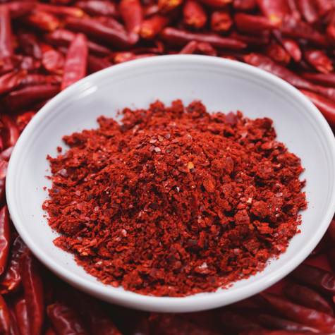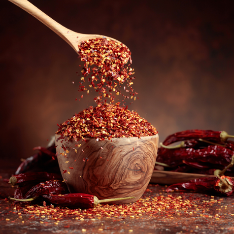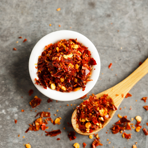 Red chilli flakes or red pepper flakes are nothing but the crushed form of the red peppers or red chillies. These are widely used in food preparations to add a mint of spiciness and a hot peppery flavour. Sauces, soups, pickles and curries get the touch of chilli flakes most often.
